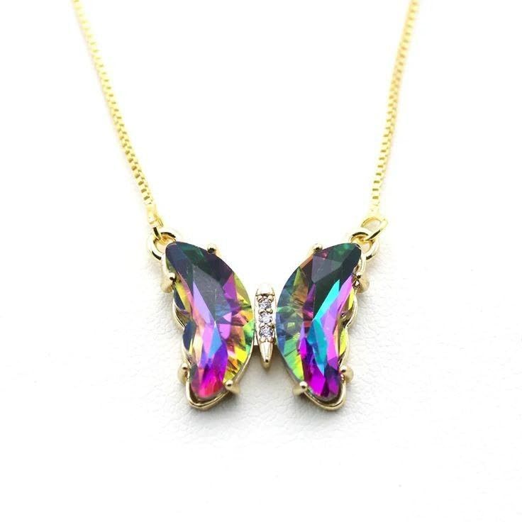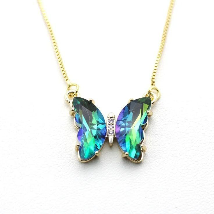 Generic - قلادة بدلاية على شكل فراشة مرصعة باحجار توباز غامضة مطلية بالذهب عيار 18 قيراط 45 سم للنساء