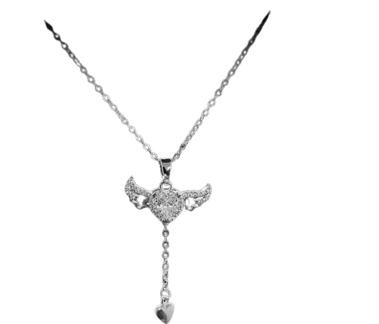 Generic - سلسلة بدلاية على شكل فراشة مرصعة بأحجار الراين، أجنحة مينا زرقاء، سلسلة فضية، طول 45 سم