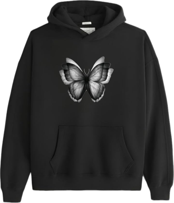 Generic - سويت شيرت بغطاء للرأس مطبوع عليه فراشة
