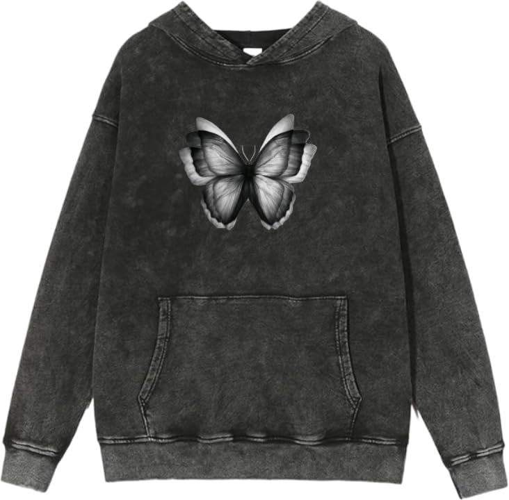 Generic - سويت شيرت بغطاء للرأس مطبوع عليه فراشة