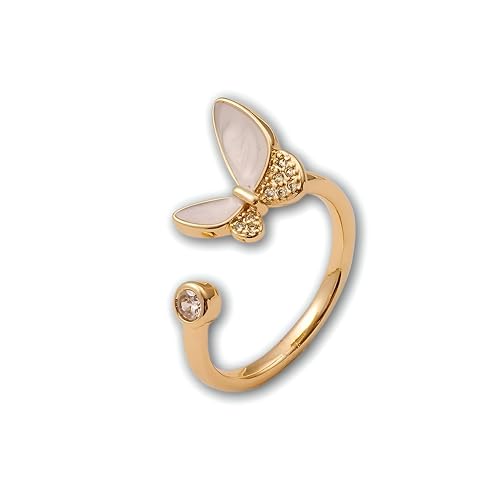 Generic - خاتم فراشة بتصميم بأجنحة مفتوحة مرصع بفصوص كريستال من الزركون المكعب للخطوبة والوعد بالزواج، اكسسوارات عصرية للنساء