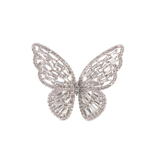 Generic - خاتم أنيق على شكل فراشة بفيونكة مرصع بحجر الزركونيا بتصميم مفتوح قابل للتعديل مناسب للزفاف والمناسبات الخاصة للنساء