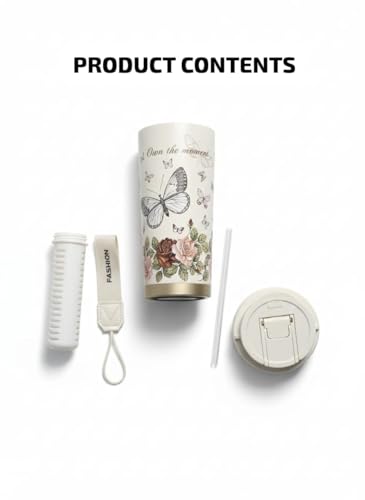 - 1- تصميم أنيق وأنيق: يتميز هذا الكوب بجمال عتيق جميل مع ورود رقيقة ورسوم توضيحية على شكل فراشة، وهو ملحق أنيق للمكتب أو صالة الألعاب الرياضية أو أثناء التنقل.