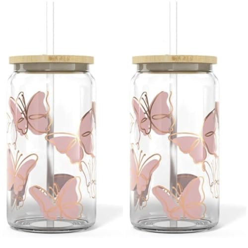 Generic - مج حراري على شكل فراشة - علبة زجاجية معزولة 550 مل مع ماصة، غطاء مقاوم للانسكاب، تصميم مقاوم للبرودة والساخنة للقهوة والشاي والعصائر والترطيب اليومي (كوبين)