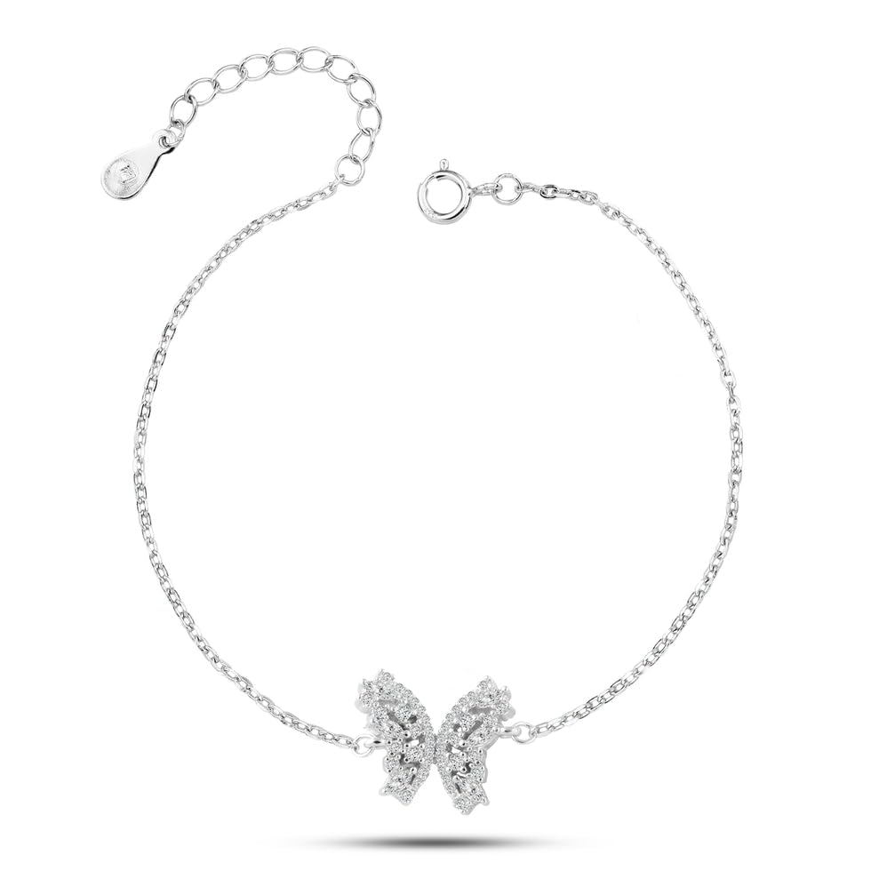 Generic - سوار فضة عيار 925 مرصع بالزركون على شكل فراشة، سوار فضي يتميز بتصميم فراشة مزين بالزركون الابيض المتلألئ، مما يضيف لمسة انثوية وساحرة لذوقك.