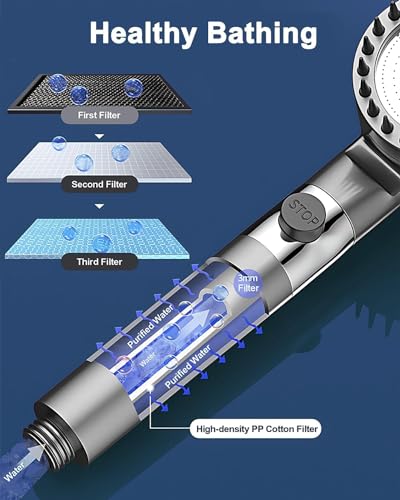 - 【نظام تصفية قوي محمول باليد】 يحتوي على تصفية من قطن البولي بروبيلين متعدد الميكرون، مما يسمح له بامتصاص الشوائب في الماء وإزالة الرواسب ورقائق الحديد والغبار وغيرهم من الماء. بالإضافة إلى ذلك، يمكن أن يقلل من تلف البشرة والشعر، وينظف البشرة بعمق ويجعل المسام تتنفس بحرية.