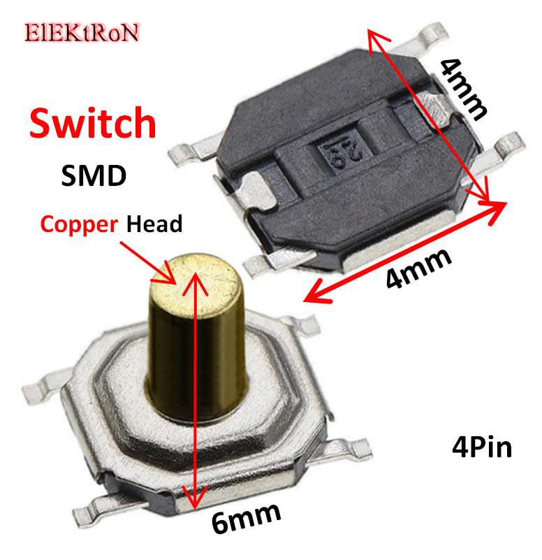 Generic - عدد 10 قطع من زر باور - Micro High performance Durable Tactile Push Button Momentary Switch Tact 4pin Copper Head Head Keys (4mm x 4mm x 6mm) SMD