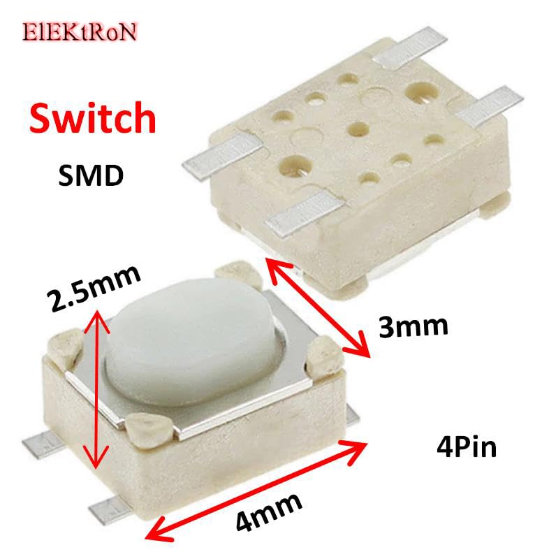 Generic - عدد 10 قطع من زر باور - Micro High performance Durable Tactile Push Button Momentary White Tact Switch DC12V 50mA Tact 4Pin (4mm x 3mm x 2.5mm) SMD
