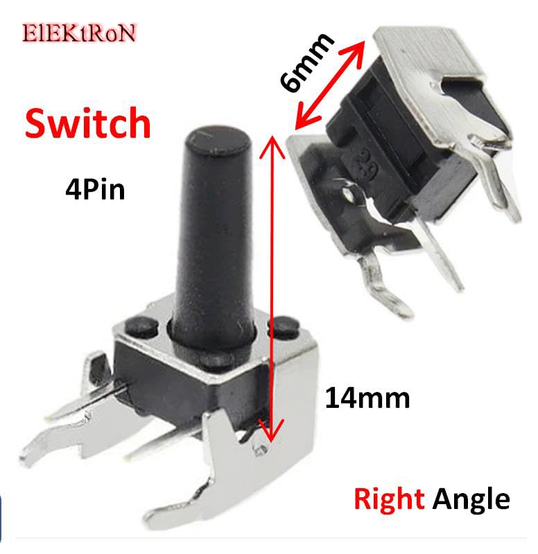 Generic - عدد 10 قطع من زر باور - Micro High performance Durable Tactile Push Button Square Momentary Switch DIP Light Touch Power Self-Reset 4 Pins 90 Angle stent for PCB (6 mm x 6 mm x 14 mm) DIP