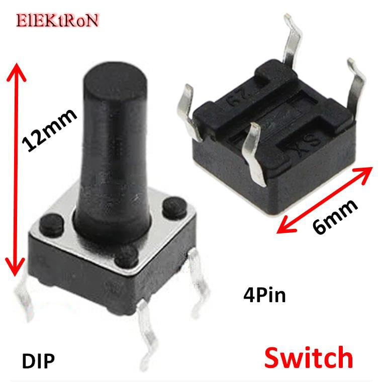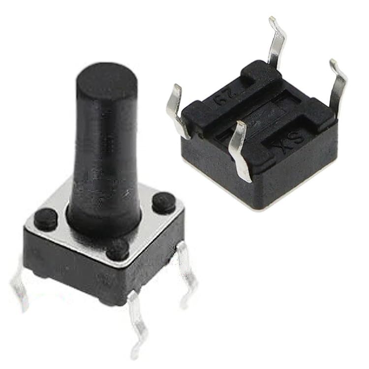 Generic - عدد 10 قطع من زر باور - Micro High performance Durable Tactile Push Button Square Momentary Switch DIP Light Touch Power Switch 4Pins for PCB (6mm x 6mm x 12mm) DIP