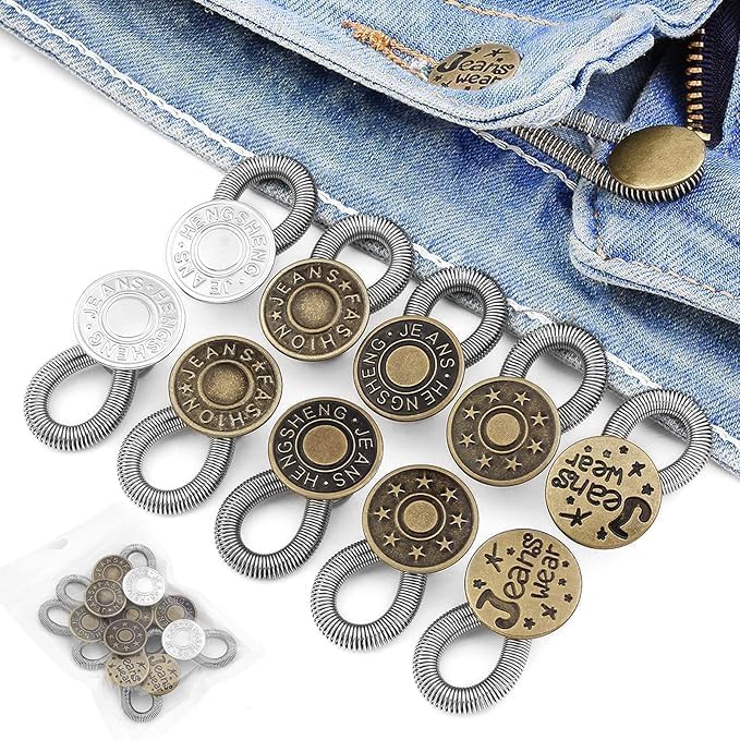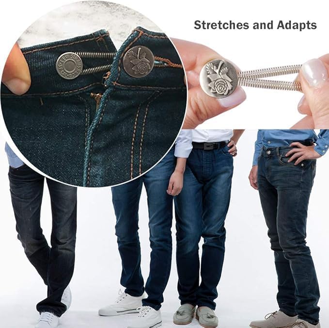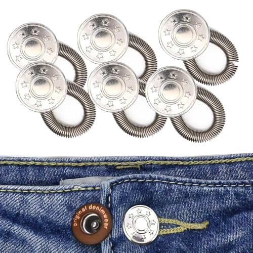 Generic - -أزرار - معدنية لتمديد البنطلونات الجينز لكل من الرجال والنساء ، لا يوجد خياطة لتمديدات حزام الخصر للجينز والياقات والأصفاد ، 6 قطع ، لون سلفر - من رنا ستور