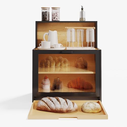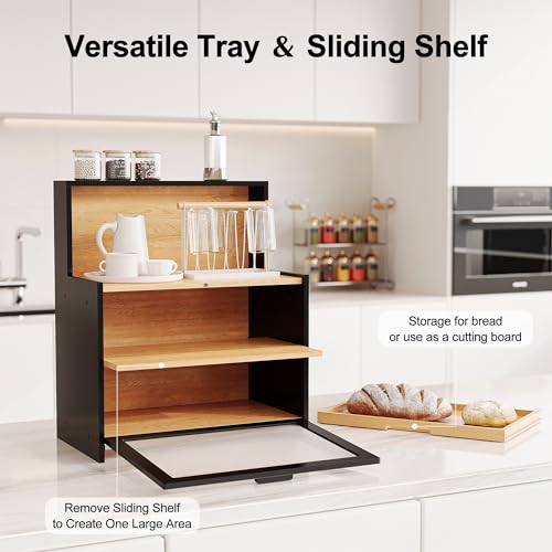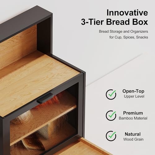 - تصميم صندوق خبز ثلاثي الطبقات متعدد الوظائف: صندوق خبز مبتكر بطبقتين مع نوافذ بلورية لتخزين الخبز وطبقة ثالثة تحتوي على حامل خبز مع فواصل، مثالي لتنظيم مختلف الأصناف.