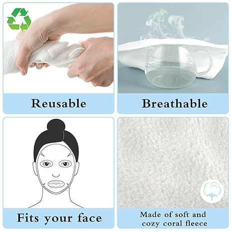 - 【ناعمة وجيدة التهوية】أقنعة بخار الوجه هذه مصنوعة من مواد عالية الجودة وجيدة التهوية ولطيفة على البشرة. تعزز حرارة فوط الوجه امتصاص منتجات العناية بالبشرة، ما يوفر تجربة تجميل أكثر فعالية وراحة. استمتع بمعالجة شبيهة بالمنتجعات الصحية في المنزل.