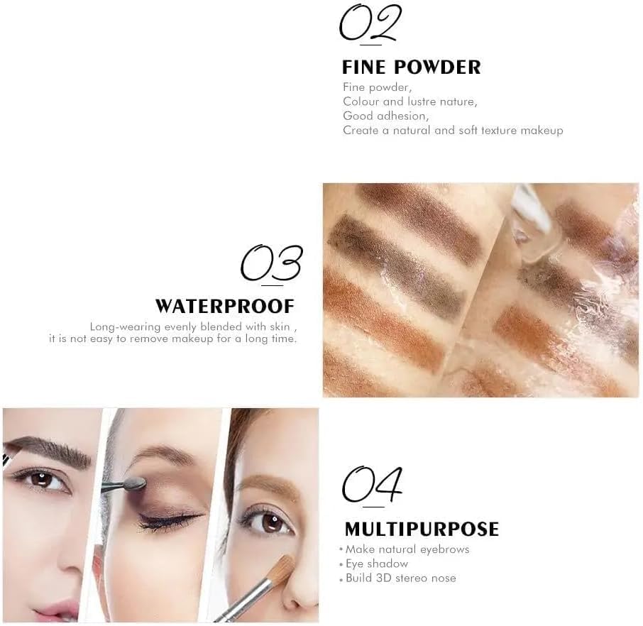 - بودرة حواجب تدوم طويلًا: تدوم طويلًا وتساعدك على الحصول على مظهر الحاجب الرائع. فرشاة التوزيع متضمنة. احصلي على حواجب أكثر امتلاءً وسُمكًا وأكثر تحديدًا.