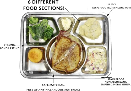 Happy Home - طبق عشاء تالي مكون من 6 أقسام من الفولاذ المقاوم للصدأ، صينية عشاء مقسمة/علبة غداء، طبق معدني، قطعتان و6 أقسام