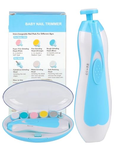 BUYERZONE WITH BZ LOGO - مجموعة تشذيب أظافر الأطفال مع ضوء من بايرزون مقصات اظافر كهربائية للأطفال مبرد آمن حديثي الولادة إلى الصغار أداة قص للعناية بالأظافر والكبار أزرق بيرزون ويز بي زد لوجو