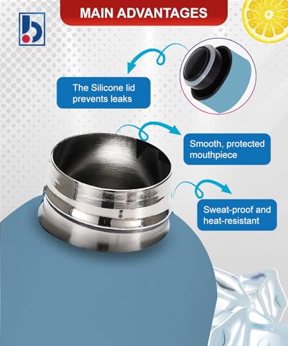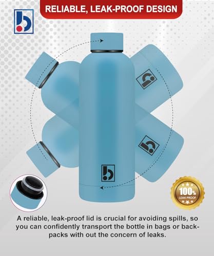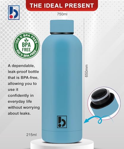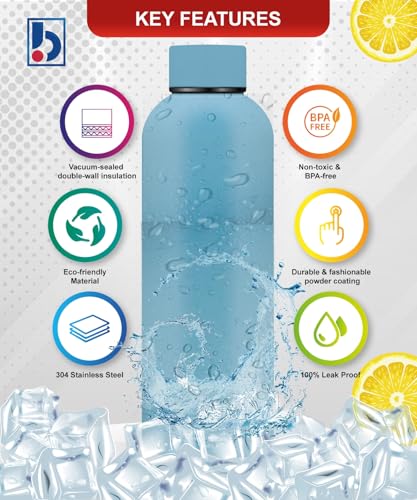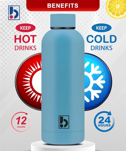 BuyOn - زجاجة مياه معدن من الفولاذ المقاوم للصدأ من بايون بتصميم معزول بجدار مزدوج للمياه الساخنة والباردة للأطفال في المدرسة والجيم والمكتب (لون أزرق (SEA BLUE) 750 مل)