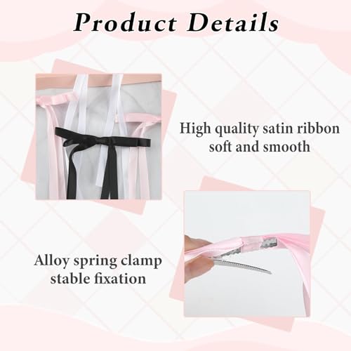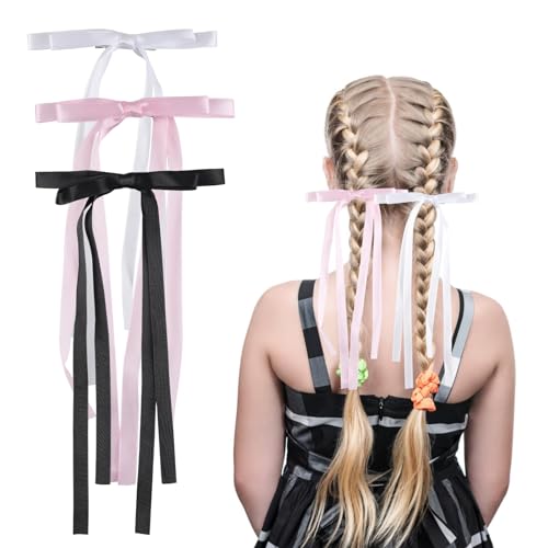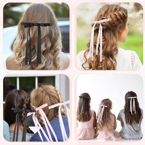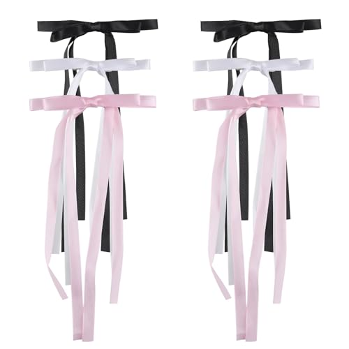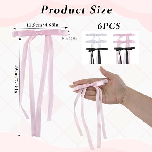 Buysow - مجموعة من 6 مشابك شعر حريرية من الساتان للنساء، اكسسوارات شعر، فيونكة شعر نسائية مع مشبك شعر فرنسي طويل سادة للنساء والفتيات (أسود، وردي، أبيض)