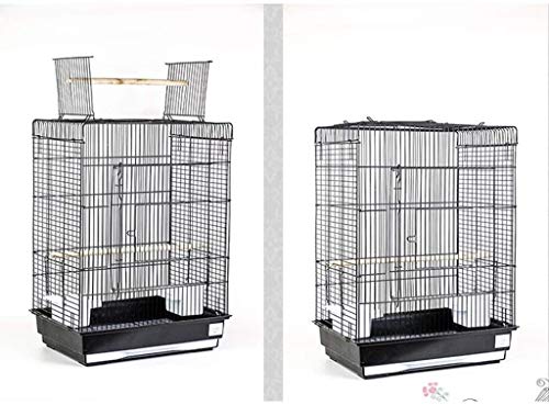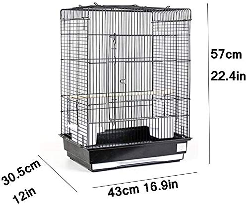 BUYT - قفص طيور كبير، قفص طيور معدني بتصميم مفتوح من الأعلى للببغاء، قفص طيور كبير لطيور البادجي وطيور الحب والشرشوريات والكوكاتيل والكناري والببغاوات والبراكيت، مناسب للسفر (اللون: اسود)