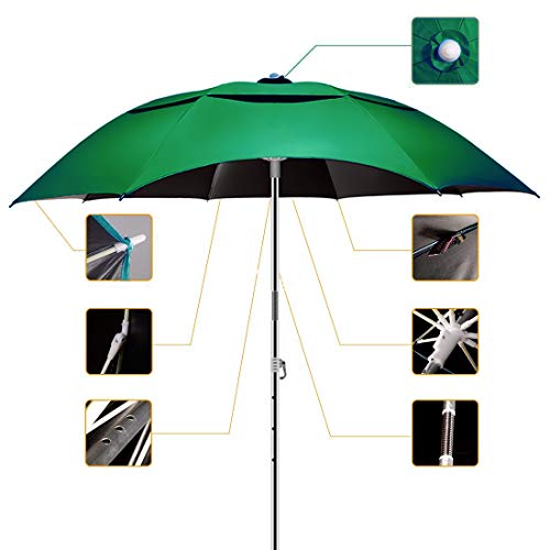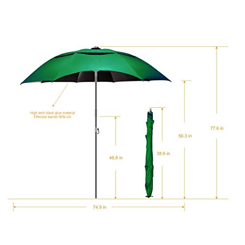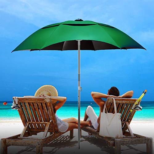 Buziba - شمسية شاطئ مع مرساة قابلة للامالة ومقاومة للرياح للحماية من الأشعة فوق البنفسجية 50+، مظلة محمولة للاستخدام الخارجي والفناء والحديقة وحمام السباحة والفناء الخلفي من بوزيبا، أخضر