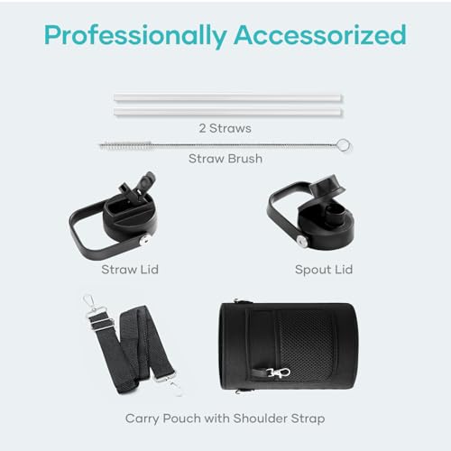 - غطاءين للإغلاق: تأتي زجاجة المياه المصنوعة من الفولاذ المقاوم للصدأ بسعة 1.8 لتر مع غطاء مزود بشفاطة وغطاء مرن، الغطاء المرن مثالي للشاطئ والتخييم والمشي لمسافات طويلة، في حين أن الغطاء المزود بشفاطة مناسب لركوب الدراجات والرحلات على الطريق.
