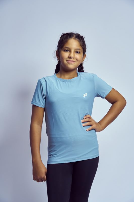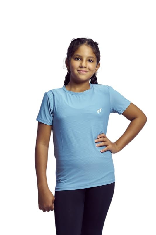 Buzz Fashion - تيشرت رياضي باكمام قصيرة للاولاد والبنات من باز فاشن، ازرق رمادي -