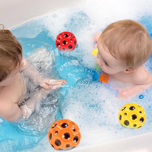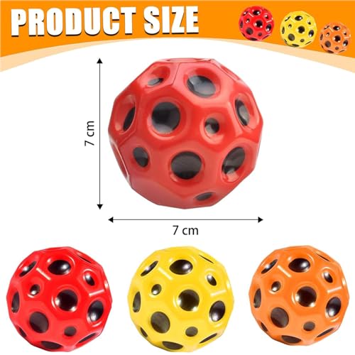 BVSRCP - كرات بتصميم سطح القمر، كرات مطاطية للقفز العالي، كرة بتصميم مستوحى من الفضاء، كرة قمر، كرة نطاطة صغيرة خفيفة الوزن، كرات نطاطة - 3 قطع (أحمر + أصفر + برتقالي)