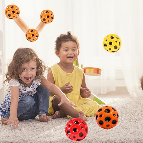 - كرة بتصميم القمر: استمتع بالحصول على ثلاث كرات نطاطة ملونة بألوان مختلفة (الأحمر والأصفر والأزرق) يبلغ قطر كرة القمر 7 سم وتزن 48 جرامًا فقط. مع مرونة ناعمة. تأكد من أنه يمكنك الإمساك بها والتحكم فيها بسهولة دون إيذاء يديك أو أصابعك.