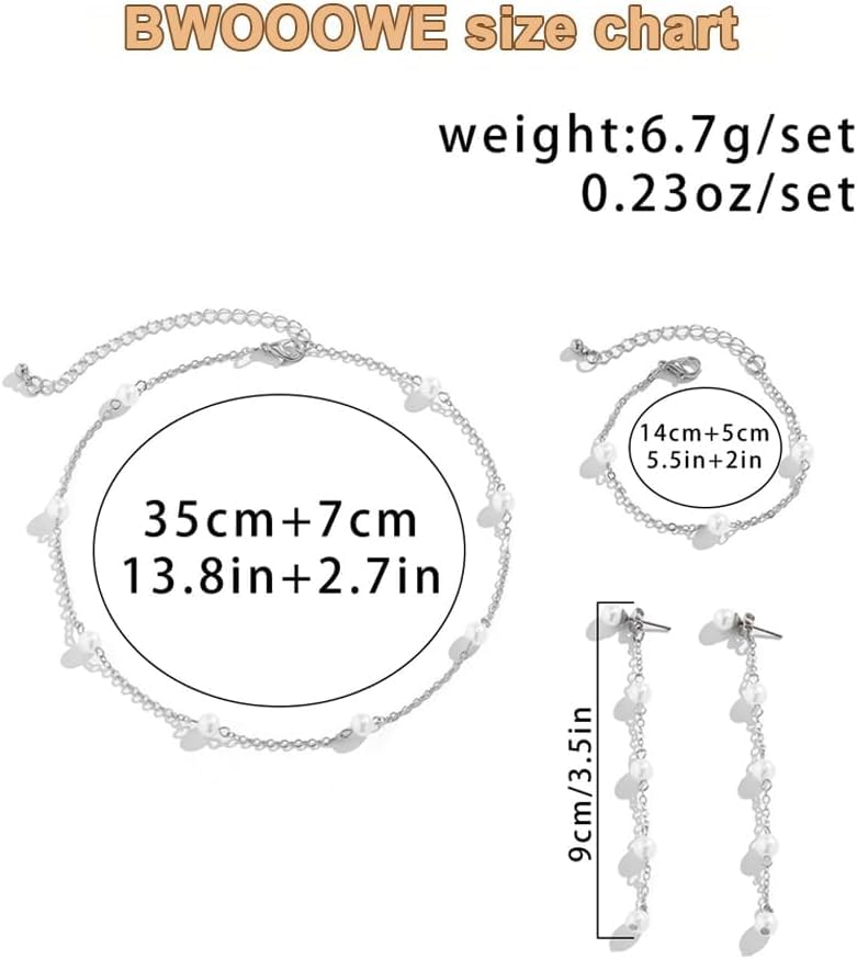BWOOOWE - طقم مجوهرات للنساء مكون من 3 قطع يتضمن حلقان وسلاسل وأساور وملائم للهدايا والعديد من المناسبات من بوي