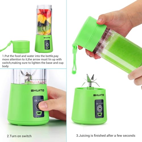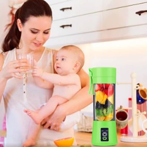 Bworppy - خلاط عصير محمول مع كابل USB، خلاط فواكه للمنزل والسفر للأطفال من بوربي، 380 مل (أخضر)، 500.0 واط