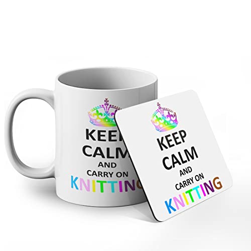 BWW Print Ltd - طقم هدايا مطبوع عليه عبارة Keep Calm and Carry On Knitting من بي دبليو دبليو برينت ليمتد، سيراميك، أبيض