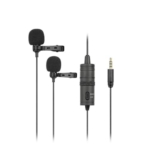 Generic - ميكروفون مزدوج لافالير محيطي – مايك ثنائي للتسجيل الاحترافي - طول كابل 4 متر - متوافق مع الموبايل والكاميرات – موديل BY-M1DM