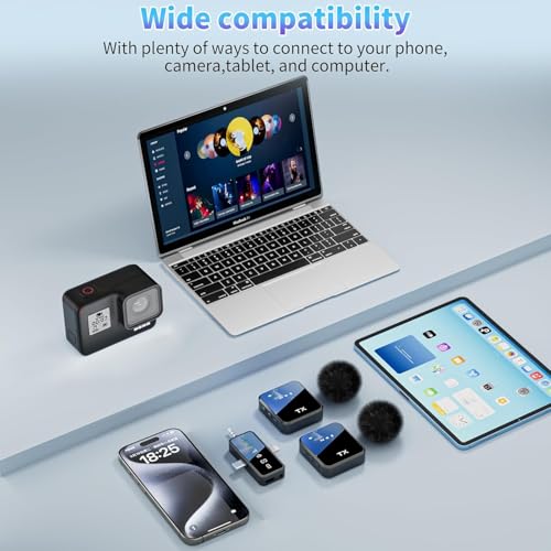 Generic - ميكروفون لاسلكي زوجى BY-V10 - مايك صغير مع ميزة تقليل الضوضاء متوافق الهواتف الذكية التي تعمل بنظام اندرويد نوع تايب سي و لايتنج و aux - اللاب توب لتسجيل اليوتيوب والبودكاست والفيسبوك