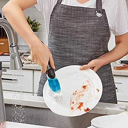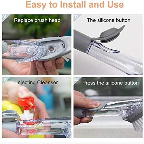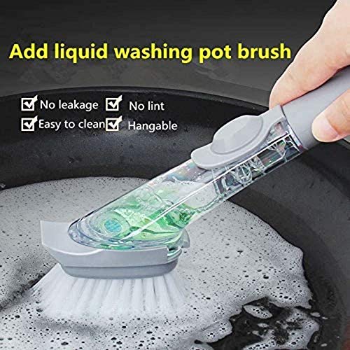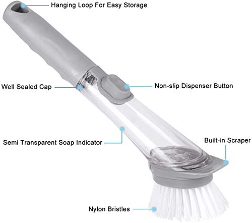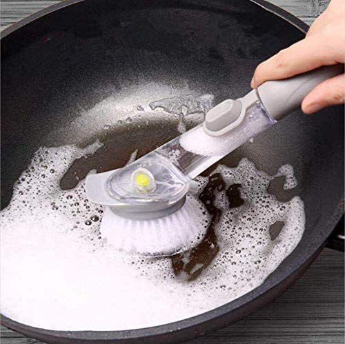 Spaceshoop - فرشاة تنظيف مع موزع صابون قابل لإعادة ملئه، تأتي مع 2 إسفنجة أضافية، مقبض غير قابل للانزلاق يبقى لتنظيف الحوض والحمام والأطباق وأدوات الطبخ والأواني وطاسات القلي من بي بي ستور