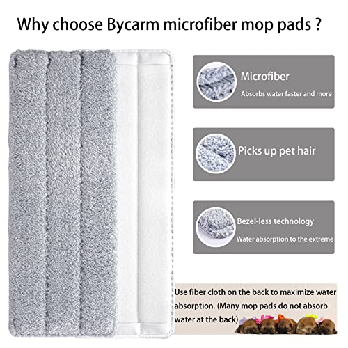 Bycarm - 3 قطع من وسادات الممسحة البديلة المصنوعة من المايكروفايبر متوافقة مع ممسحة جوي موب المسطحة او دلو الممسحة التي تعمل بالضغط، قابلة للغسل واعادة الاستخدام 13 انش × 4.9 انش، وسادات ممسحة مسطحة