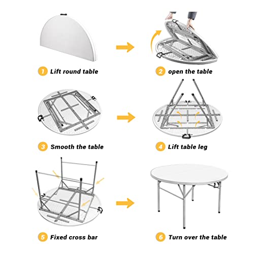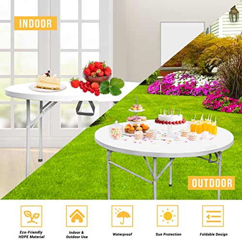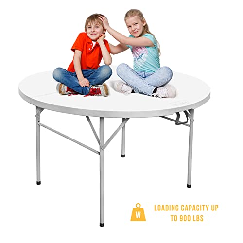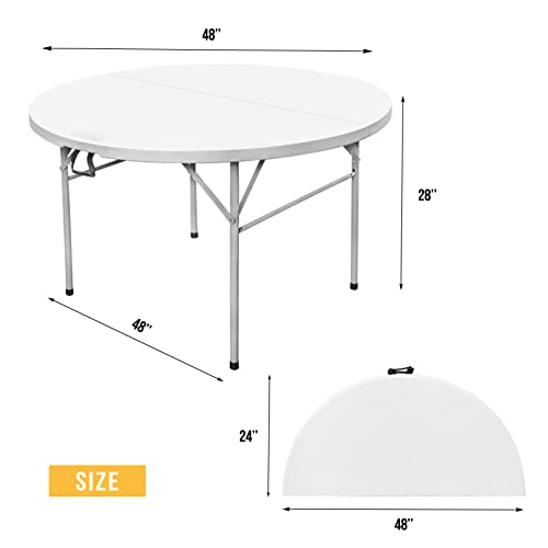 Byliable - بيلابل طاولة دائرية قابلة للطي مقاس 48 انش من البلاستيك الابيض قابلة للطي، طاولة بطاقات دائرية للحفلات الخارجية والولائم وحفلات الزفاف والمناسبات، بولي إيثيلين عالي الكثافة