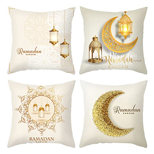 BYNYXI - أكياس مخدات لرمضان بتصميم قمر ونجمة وفانوس لغرفة المعيشة والمكتب والاحتفالات الدينية/ الثقافية، من BYNYXI، ذهبي، 45 ×45 سم من 4 قطع