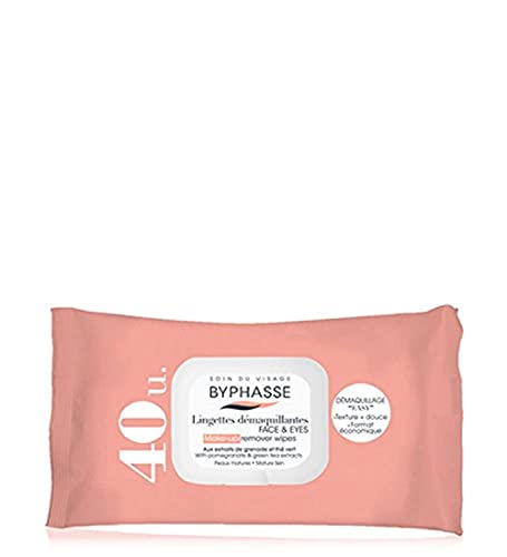 Byphasse - مزيل مكياج للبشرة المتقدمة في العمر بمستخلصات الرمان والشاي الأخضر من باي فايس، 40 منديل مبلل