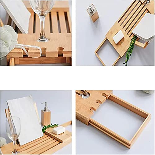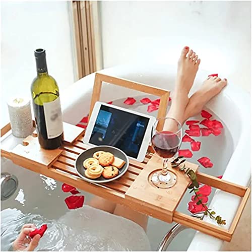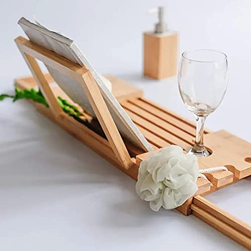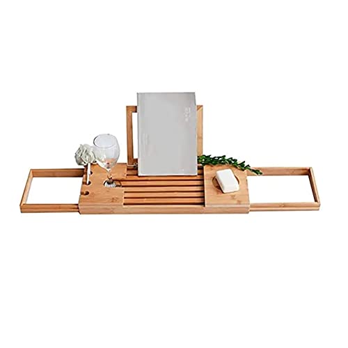 bai yin ping - رف حمام حامل قابل للتمدد مع حامل أكواب وحامل أيباد / مسند للكتب طارد للماء طبيعي ومثالي للاسترخاء مناسب لمعظم أحواض الاستحمام من بايبينج