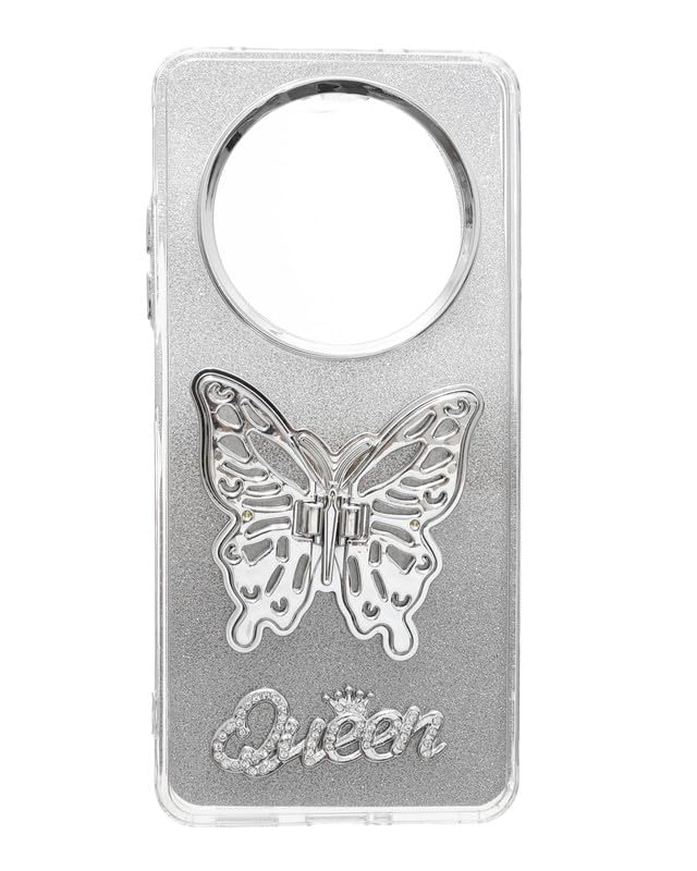 C.F.S - جراب حماية لامع مع حامل مخفي على شكل فراشة ثلاثية الأبعاد لموبايل اوبو رينو 12F من سي اف اس، فضي