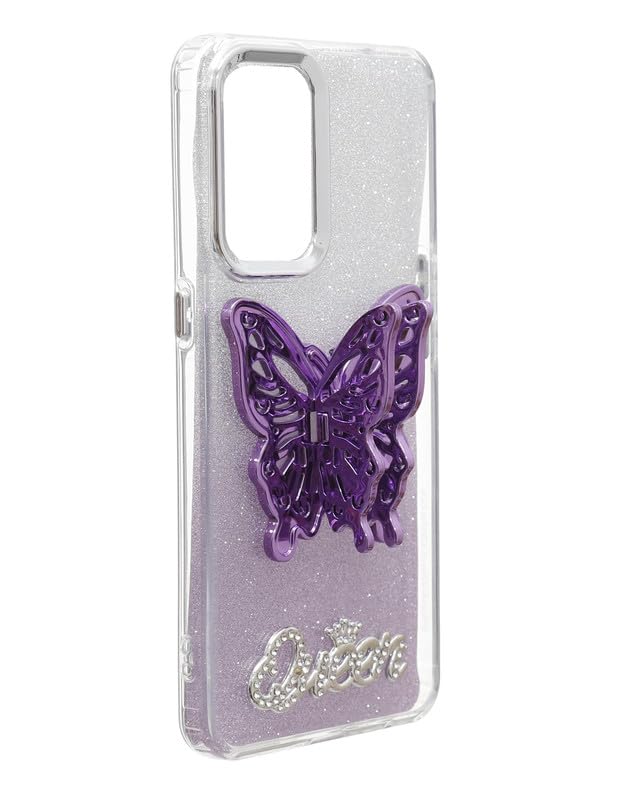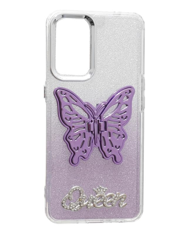C.F.S - جراب حماية خلفي مزين بجليتر للموبايل مع مسند مخفي على شكل فراشة ثلاثية الأبعاد لموبايل أوبو رينو 6 من سي اف اس، أرجواني