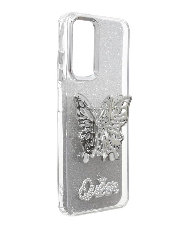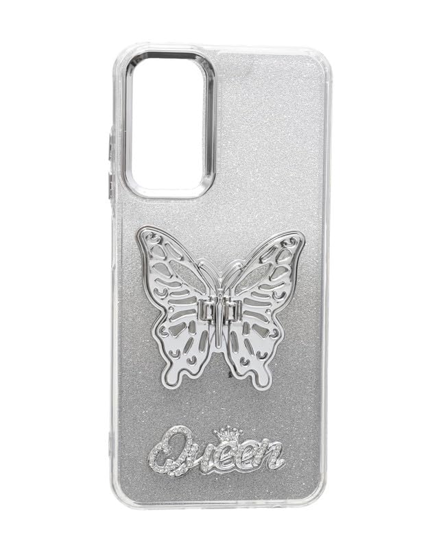 C.F.S - جراب حماية خلفي لامع مع حامل مخفي ثلاثي الأبعاد على شكل فراشة لموبايل سامسونج جالاكسي A05s من سي.اف.اس - فضي