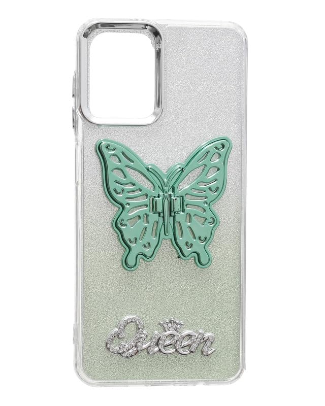 C.F.S - جراب حماية خلفي لامع بحامل مخفي على شكل فراشة ثلاثية الأبعاد لموبايل سامسونج جالاكسي A12 /M12 من سي.اف.اس - لون أخضر