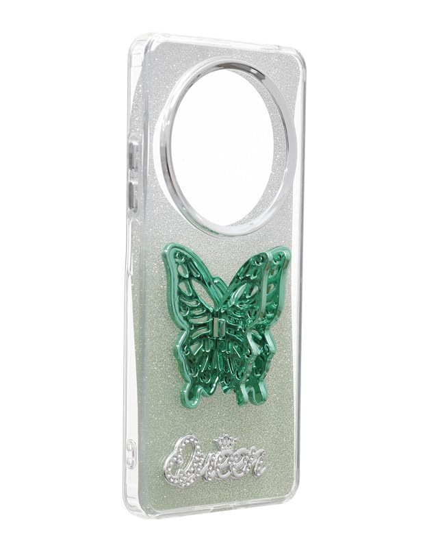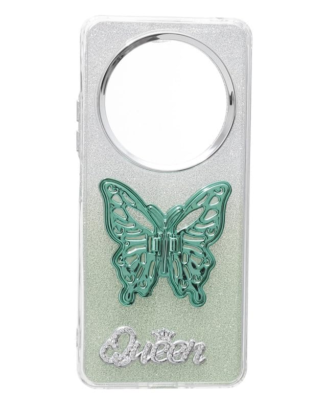 C.F.S - جراب حماية خلفي لامع للموبايل مع حامل مخفي على شكل فراشة ثلاثية الابعاد لموبايل شاومي ريدمي 14C من سي اف اس - اخضر