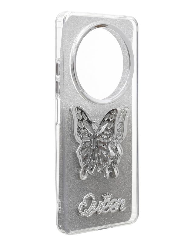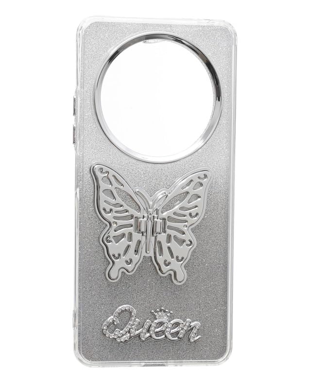 C.F.S - جراب حماية خلفي لامع للموبايل مع حامل مخفي على شكل فراشة ثلاثية الأبعاد لموبايل شاومي ريدمي 14C / ريدمي A4 / بوكو C75 من سي اف اس - فضي