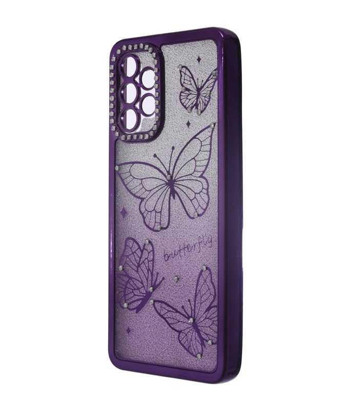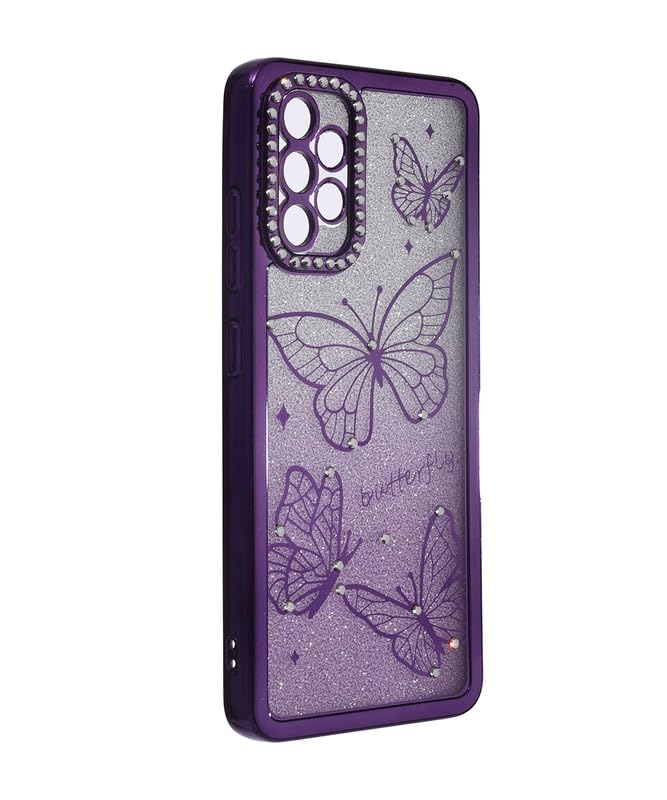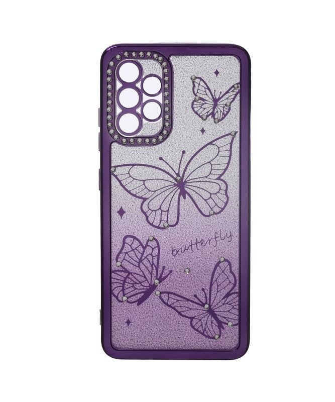 C.F.S - جراب موبايل خلفي لامع من السيليكون الصلب بتصميم فراشة لموبايل سامسونج جالاكسي A32 شبكة الجيل الرابع 4G من C.F.S - أرجواني