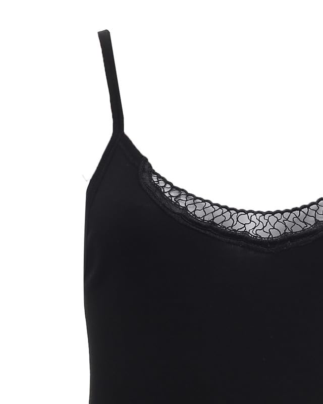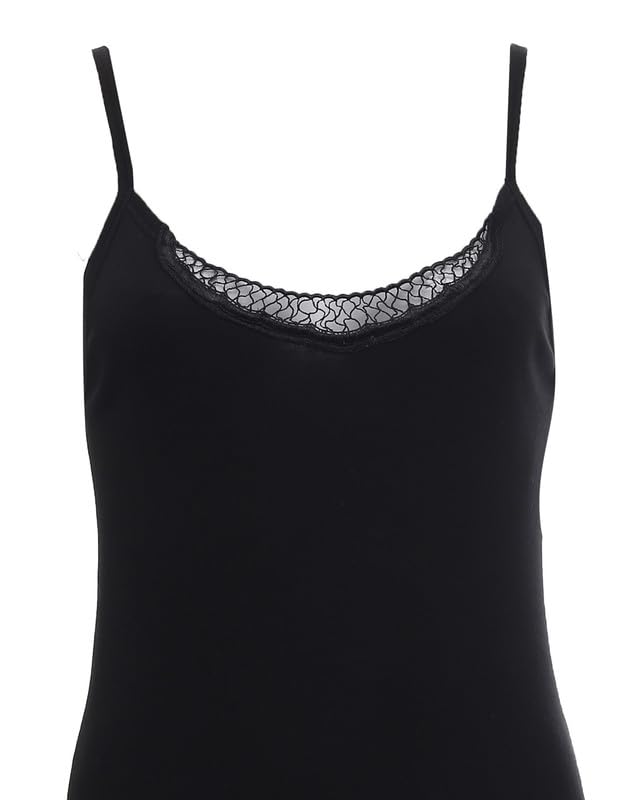C&K - قميص داخلي قطن حمالة رفيعة مطرز دانتيل مقاس 46 للنساء من C&K - اسود