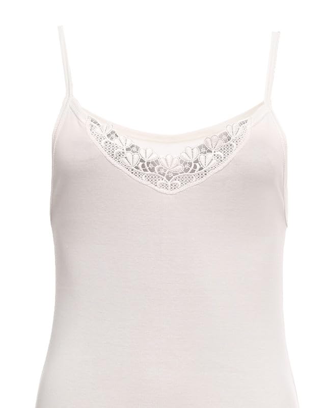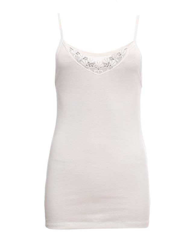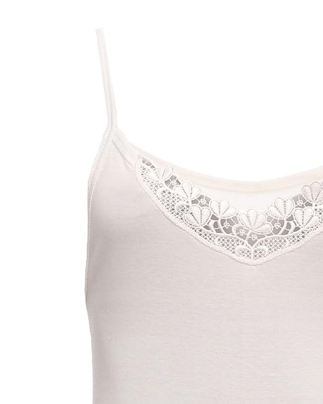 C&K - قميص داخلي قطن حمالة رفيعة مطرز دانتيل مقاس 50 للنساء من C&K - اوف وايت