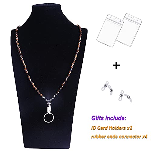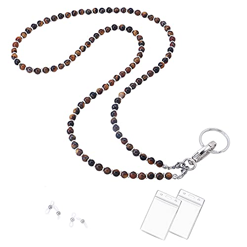 C&L Accessories - سي آند ال اكسسواريز حبل قصير للنساء، حبل مطرز لحمل شارات الهوية للمعلم وسلسلة المفاتيح (عين النمر البني)
