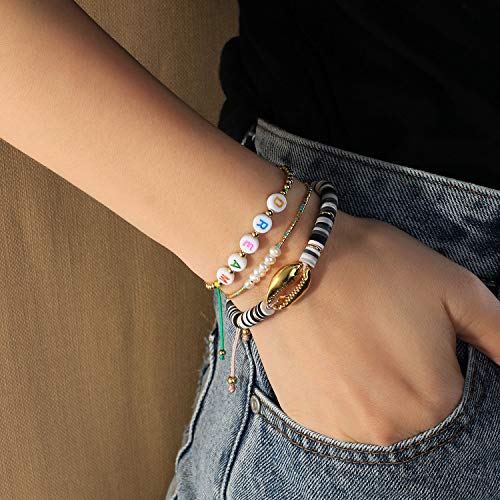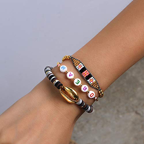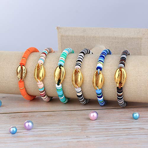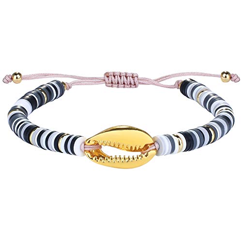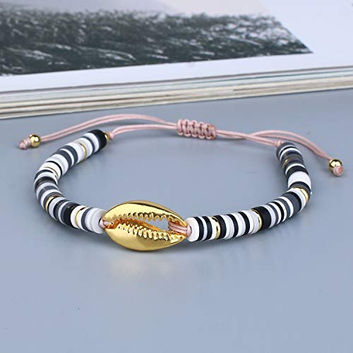 C·QUAN CHI - سوار سي. كوان ش جميل الذهب قذيفة كاوري راب ملون سيليكون كومة الصداقة اساور يدوية للنساء قابل للتعديل كريستال